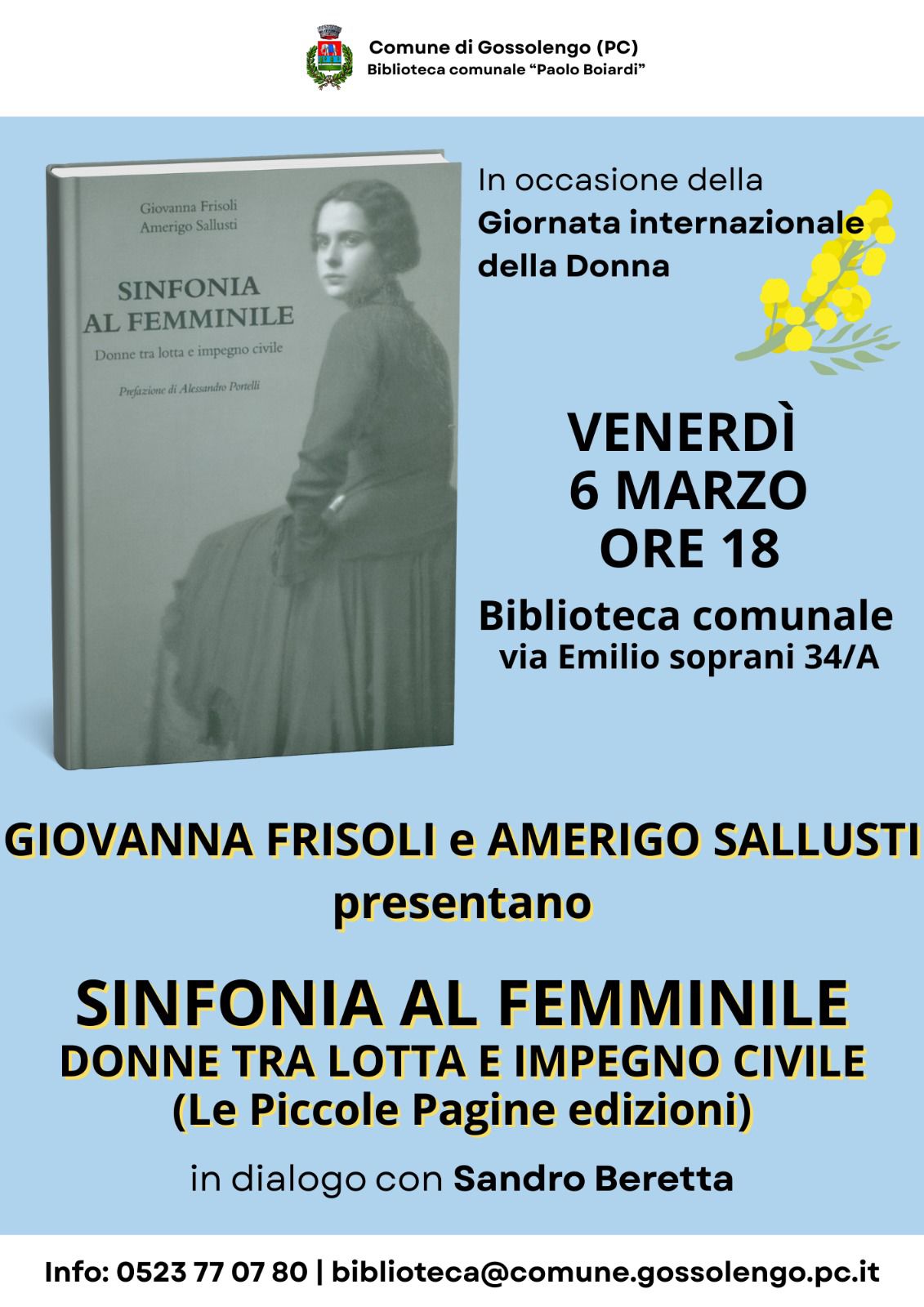 Giovanna Frisoli e Amerigo Sallusti presentano Sinfonia al Femminile-Donne tra lotta e impegno civile -In dialogo con Sandro Beretta