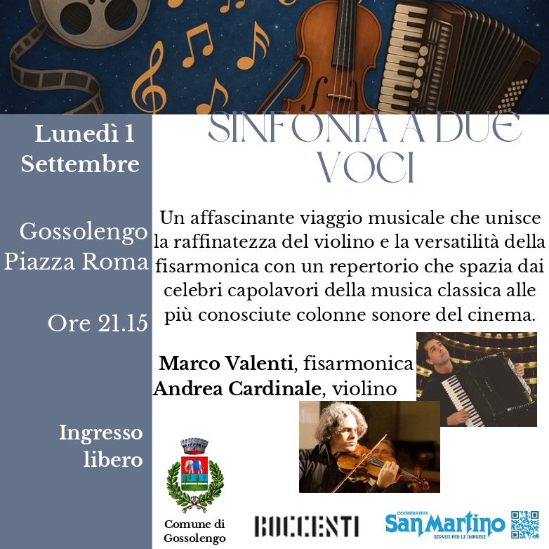 Un affascinante viaggio musicale che unisce la rafinatezza del violino e la versatilità della fisarmonica-musica classica e colonne sonore del cinema